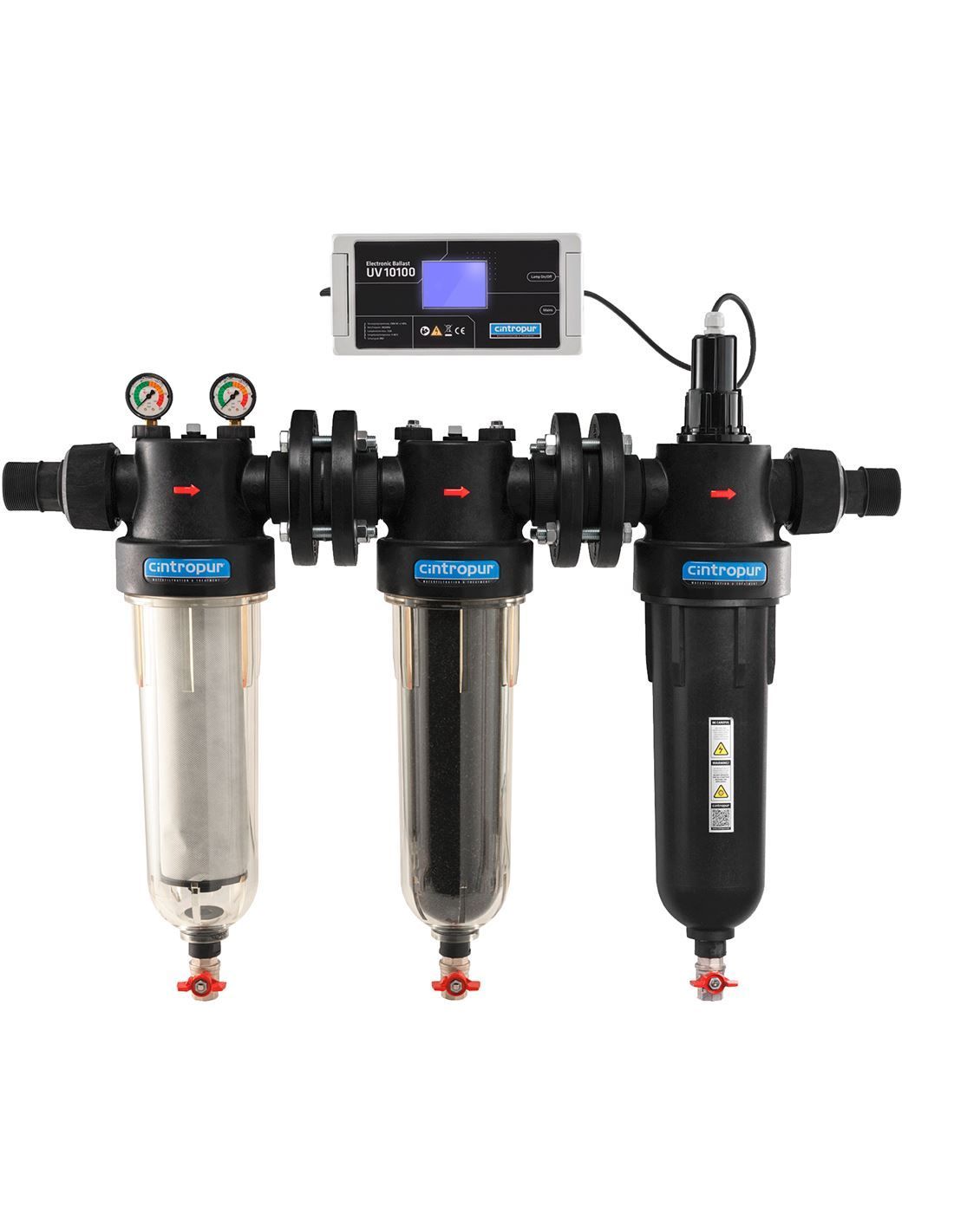 Le filtre UV-Trio 10 100 de Cintropur est une solution de purification innovante, associant filtration mécanique, purification par charbon actif et désinfection UV pour des performances exceptionnelles.