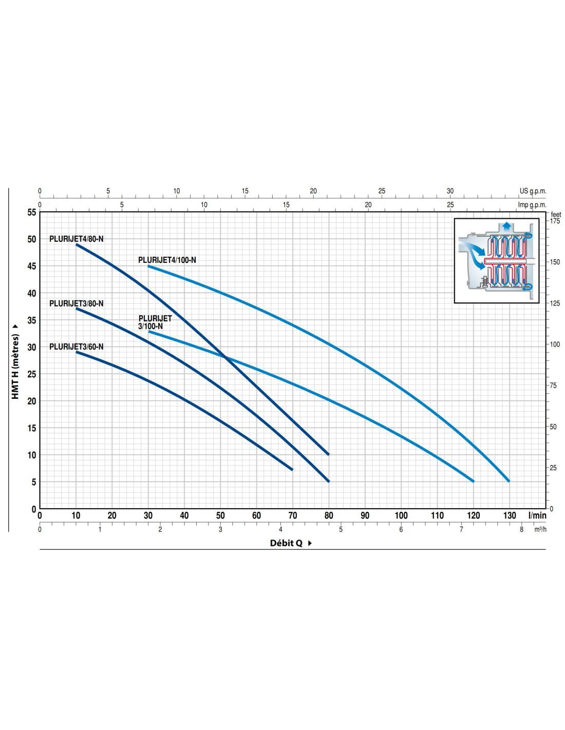 Les pompes auto-amorçantes PLURIJET sont conçues pour aspirer de l’eau même en présence d’air mélangé au liquide pompé.