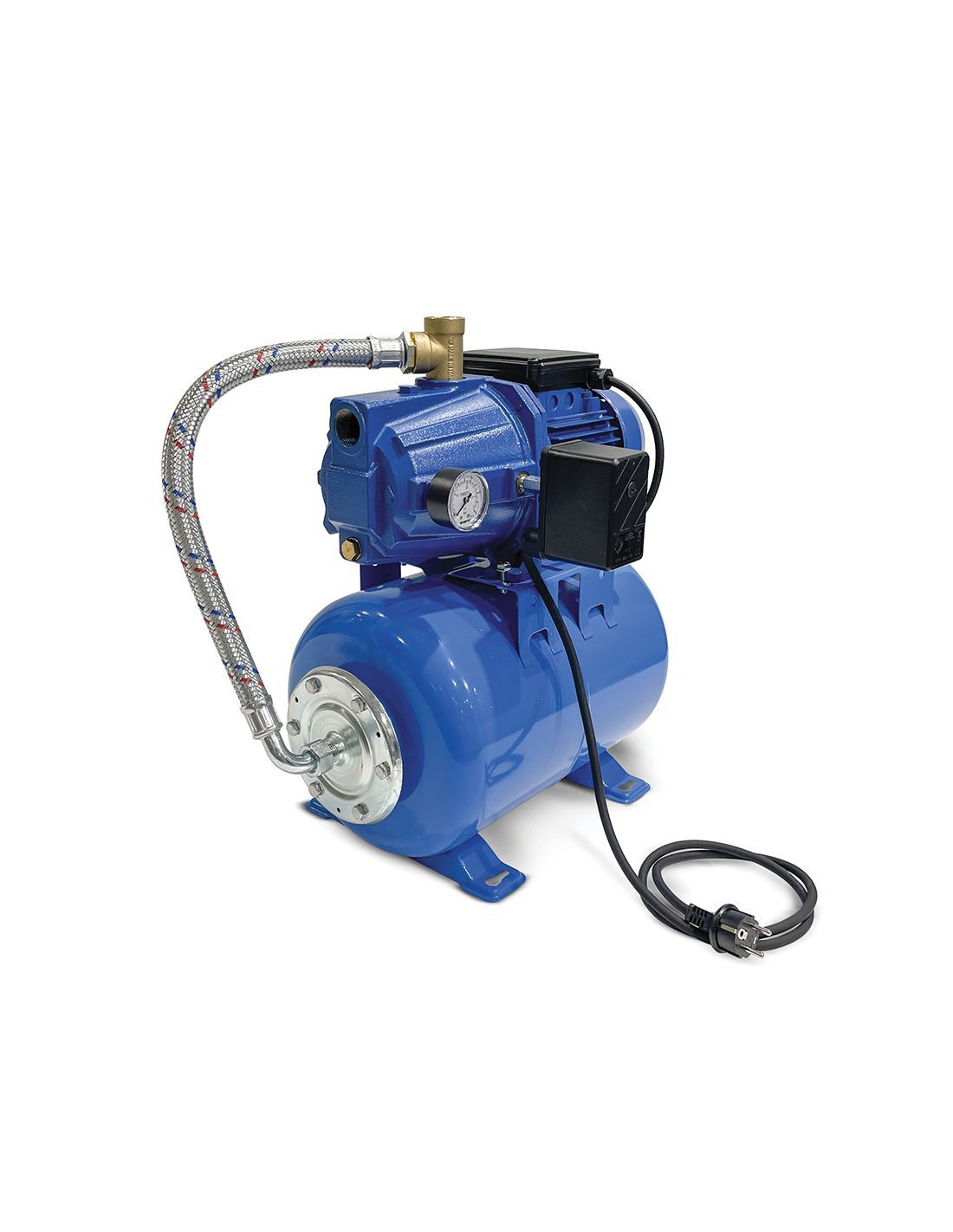 Groupe livré complet, câblé et équipé d'un pressostat électromécanique, d'un manomètre, d'une prise moulée et d'un réservoir à vessie.