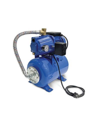 Groupe livré complet, câblé et équipé d'un pressostat électromécanique, d'un manomètre, d'une prise moulée et d'un réservoir à vessie.